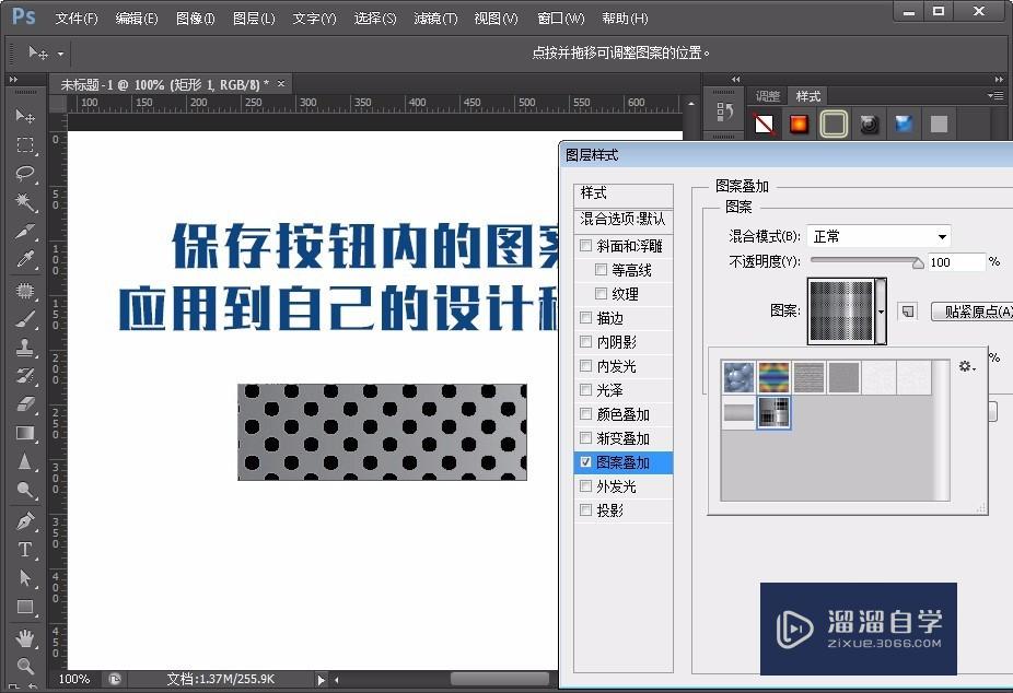 PS怎么保存图层混合样式图案叠加的图案?