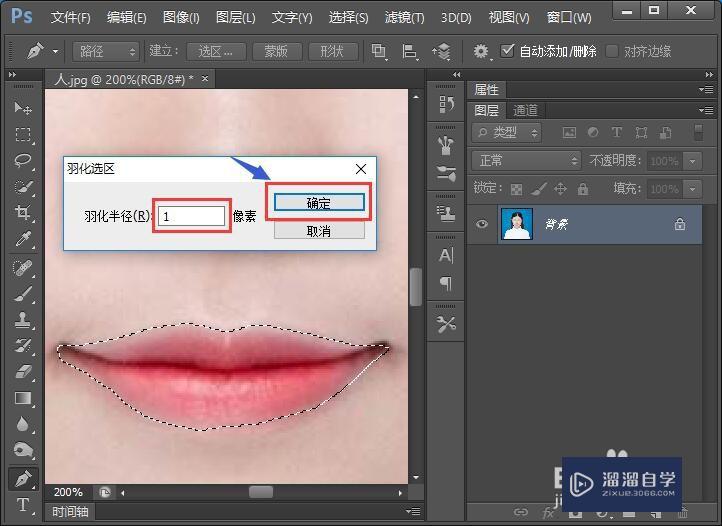 按快捷键“shift+F6”,设置羽化像素为“1”,点击“确定”。