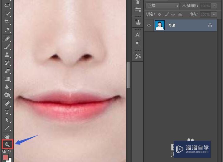5.点击“缩放工具”,将嘴唇放大。