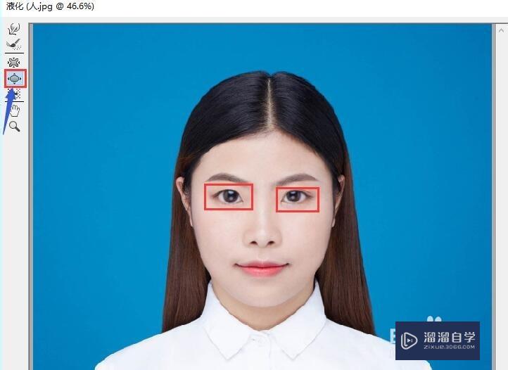 然后,点击“膨胀工具”,接着分别把鼠标光标放在两只眼睛上点击,人物的眼睛就增大了。
