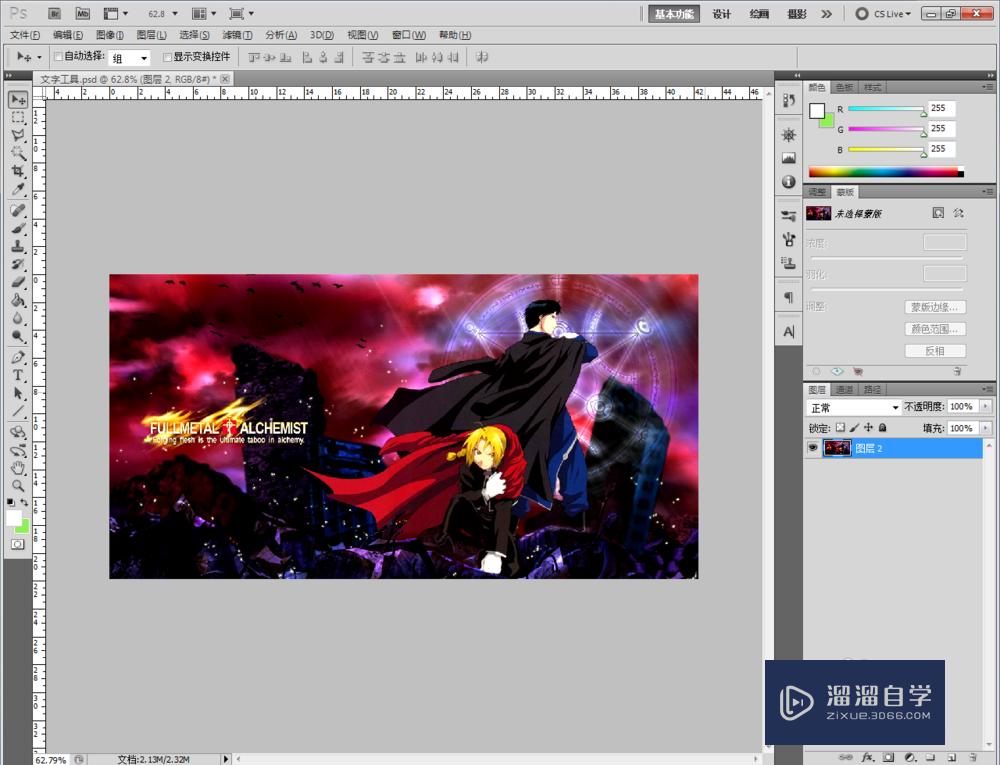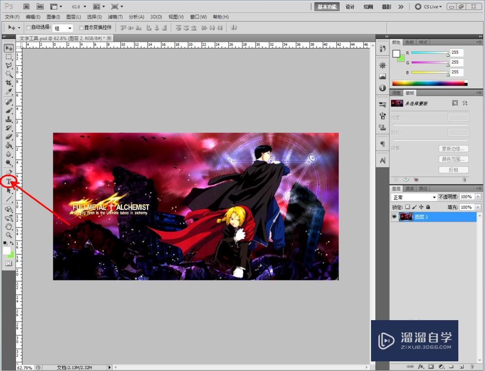 第1步打开Photoshop(CS5)软件,打开一张我们找好的“钢炼”背景图片;