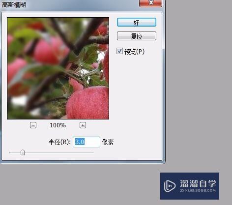 我们试着调整一下半径下面的横条,右边的预览要勾选上,这样的话可以直接预览效果,移动到觉得可以了,点击好