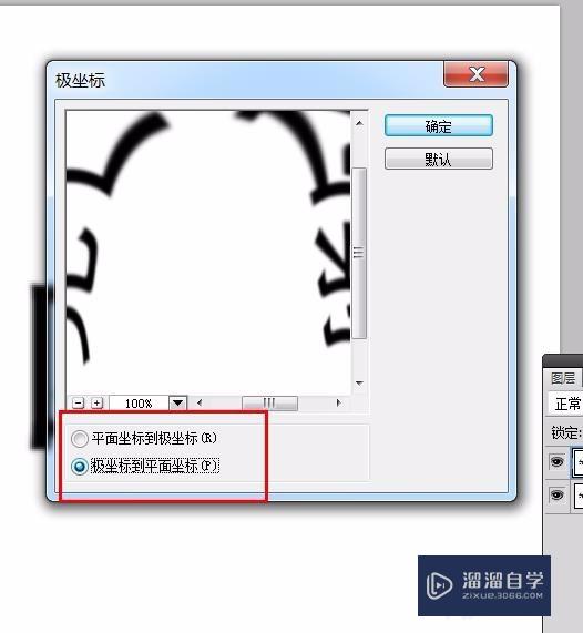 选择背景层和文字层,执行合并图层命令,再拷贝图层--图层1,在图层1执行滤镜-->扭曲-->极坐标,设置为极坐标到平面坐标,效果如下图
