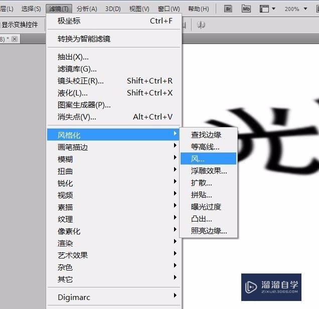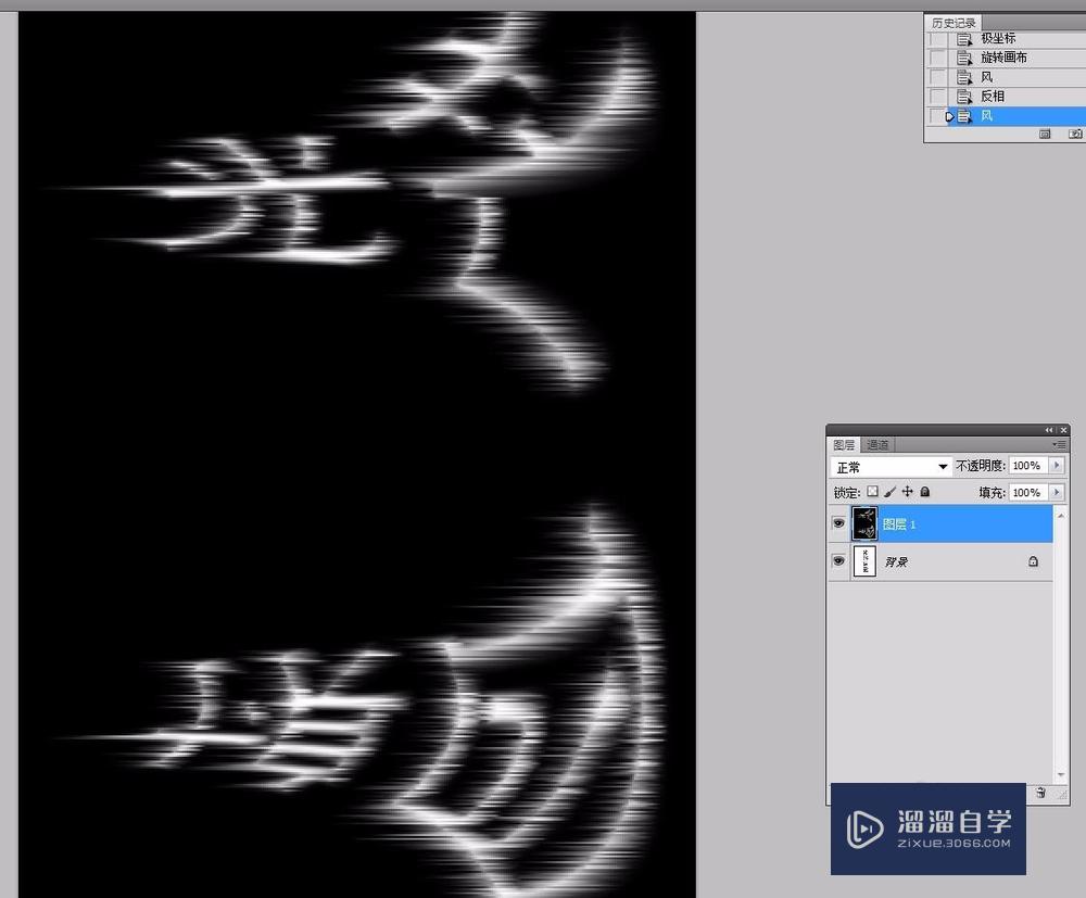 然后按执行ctrl+ i 执行反相命令,然后再执行一次选择滤镜-->风格化-->风,设置方向向右