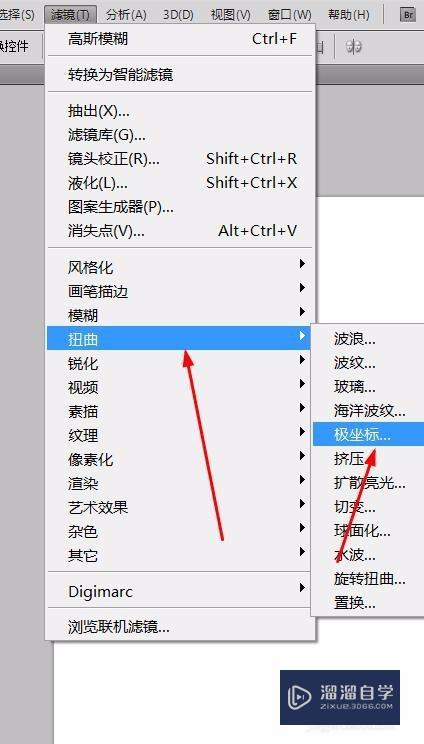 然后再执行逆时针旋转90度命令;再执行滤镜--扭曲--极坐标命令,设置为平面坐标到极坐标,最终效果如下图