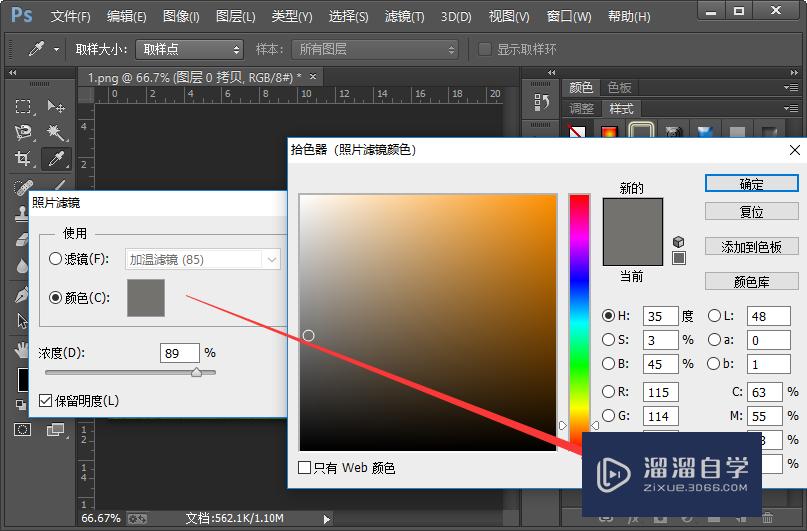 接下来我们设置照片滤镜的参数,滤镜我们选择加温滤镜,颜色色号的设置如图所示,浓度我们设置为89%就可以了。